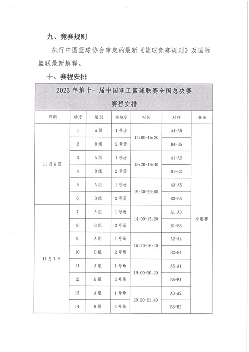 关于印发《2023第十一届中国职工篮球联赛全国总决赛竞赛规程》的通知