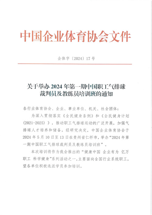 关于举办2024年第一期中国职工气排球 裁判员及教练员培训班的通知