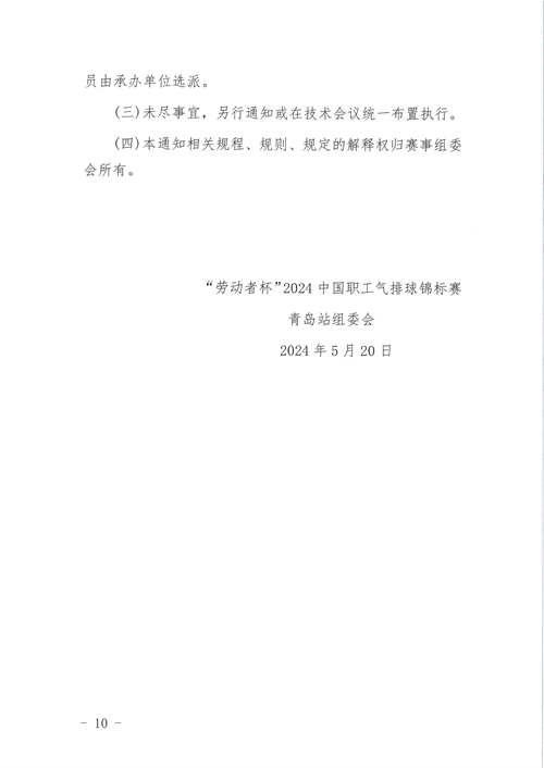 关于举办“劳动者杯”2024中国职工气排球锦标赛青岛站比赛的通知