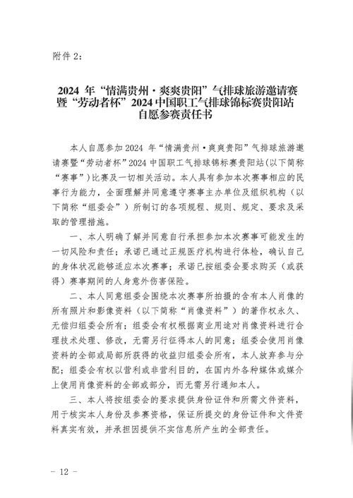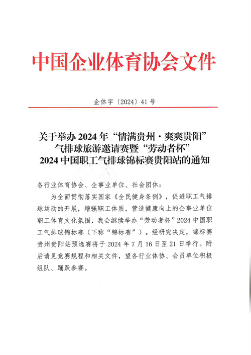 关于举办2024年“情满贵州· 爽爽贵阳”气排球旅游邀请赛暨“劳动者杯”2024中国职工气排球锦标赛贵阳站的通知