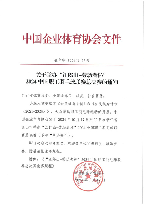 关于举办“江郎山-劳动者杯”2024中国职工羽毛球联赛总决赛的通知