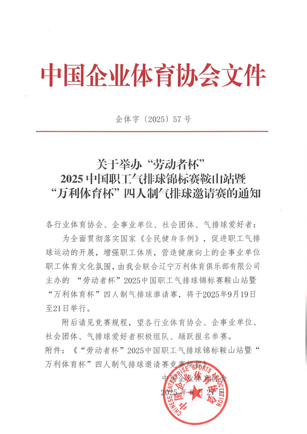 关于举办“劳动者杯”2025中国职工气排球锦标赛鞍山站暨“万利体育杯”四人制气排球邀请赛的通知