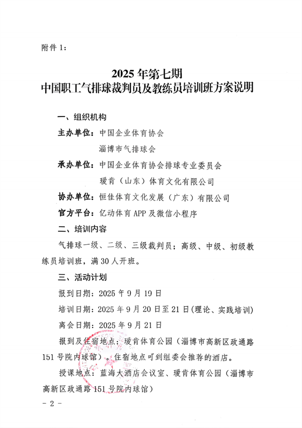 关于举办2025年第七期中国职工气排球裁判员及教练员培训班的通知