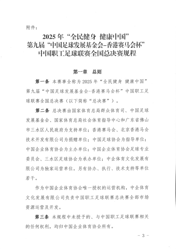 关于印发《2025年“全民健身 健康中国第九届“中国足球发展基金会-香港赛马会杯’中国职工足球联赛全国总决赛》规程的通知