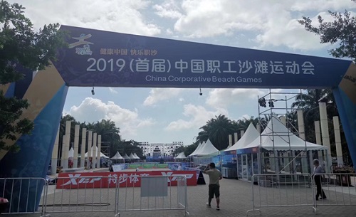 在大东海广场搭建了入口门头、行业体协旗杆(共22面)。