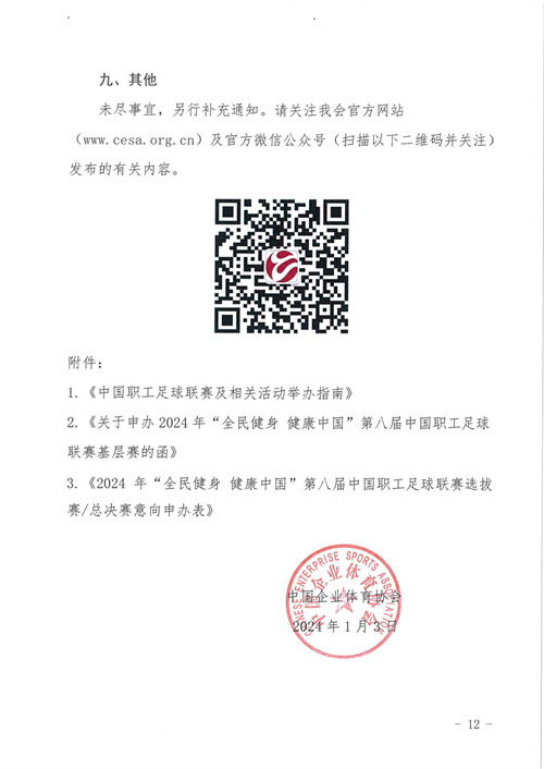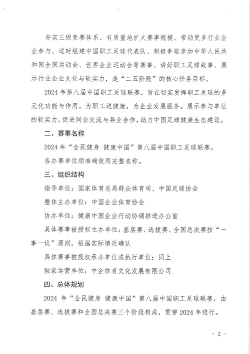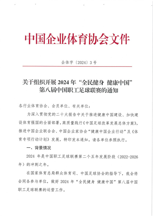 关于组织开展2024年“全民健身 健康中国”第八届中国职工足球联赛的通知