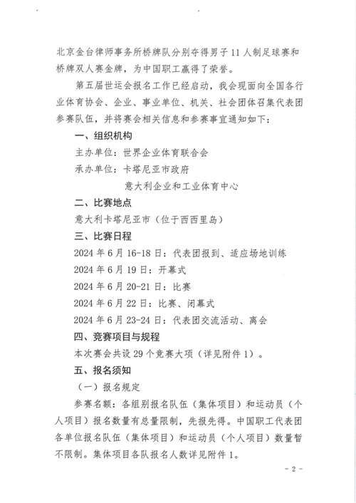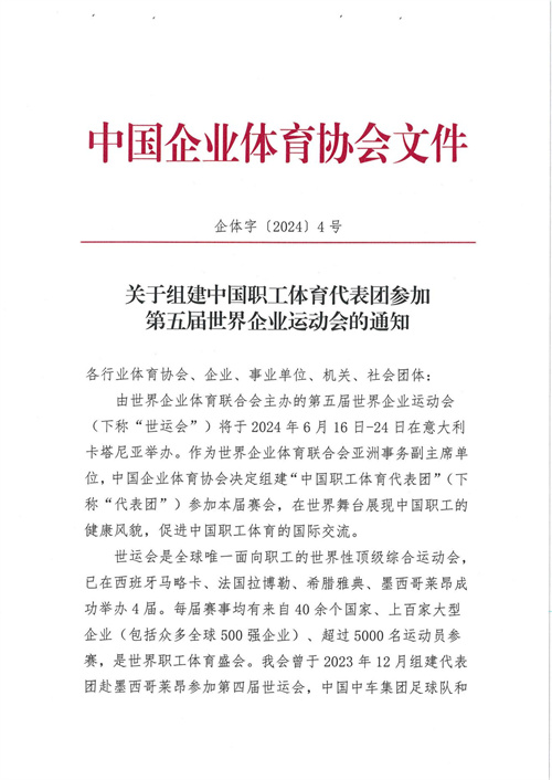 关于组建中国职工体育代表团参加第五届世界企业运动会的通知