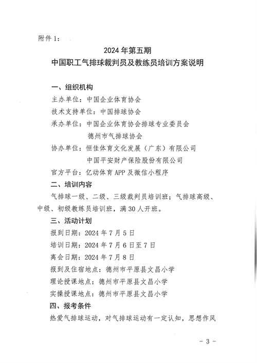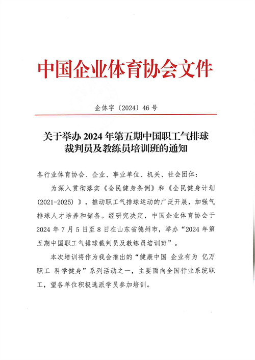 关于举办2024年第五期中国职工气排球裁判员及教练员培训班的通知