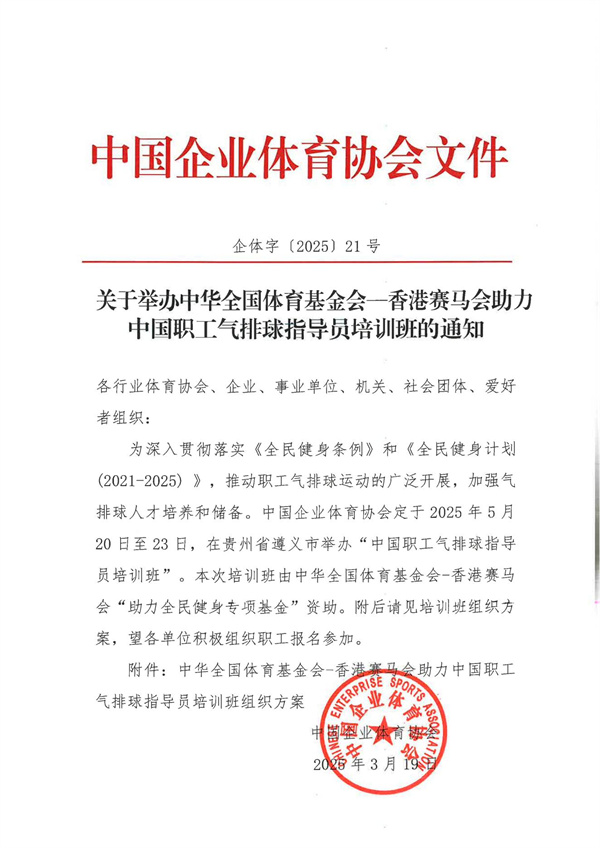 关于举办中华全国体育基金会—香港赛马会助力中国职工气排球指导员培训班的通知
