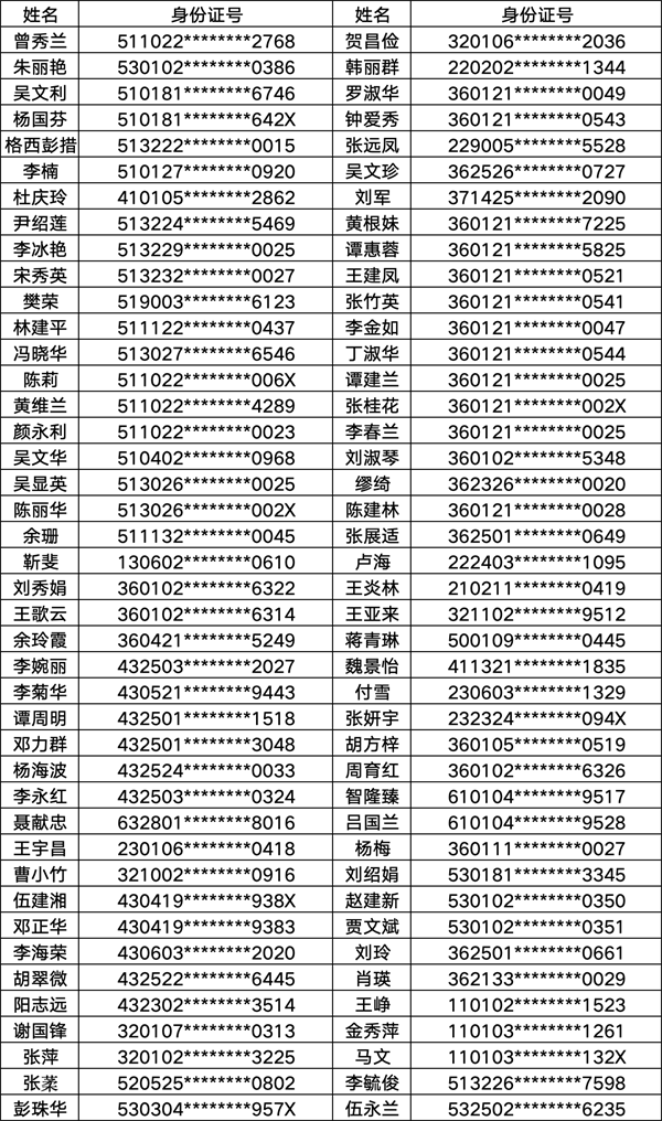 中华全国体育基金会-香港赛马会助力中国职工健身气功培训班学员名单