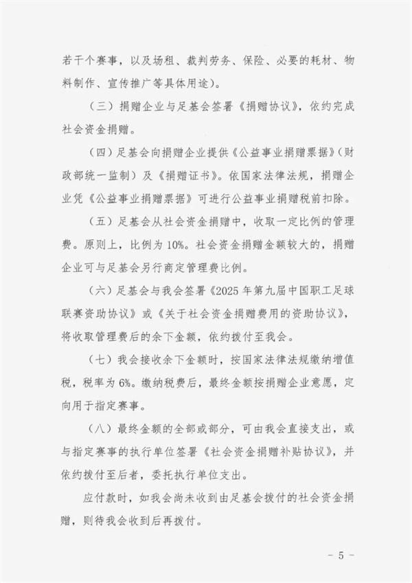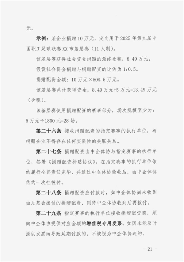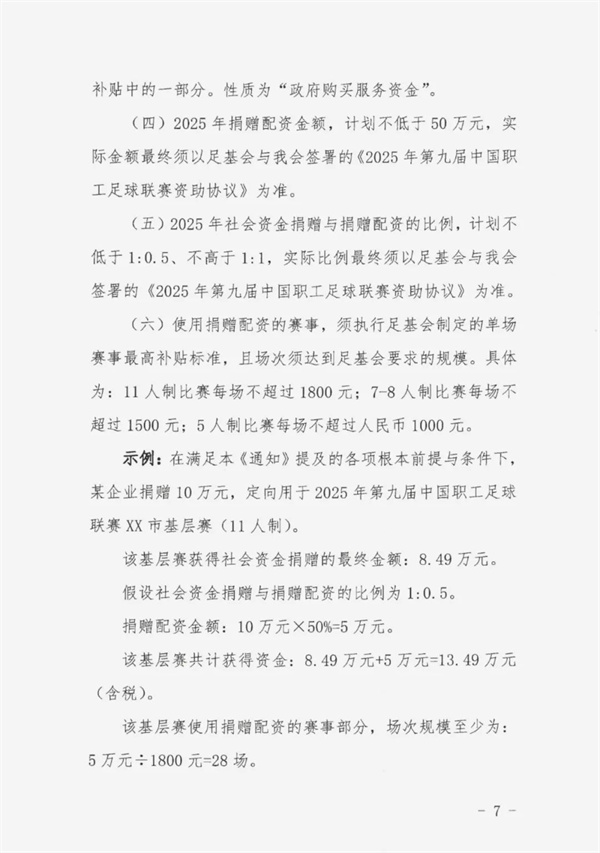 关于印发鼓励对2025年第九届中国职工足球联赛进行社会资金捐赠及计划遴选一部分赛事予以基础补贴的实施办法(试行)通知