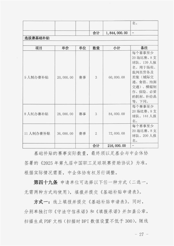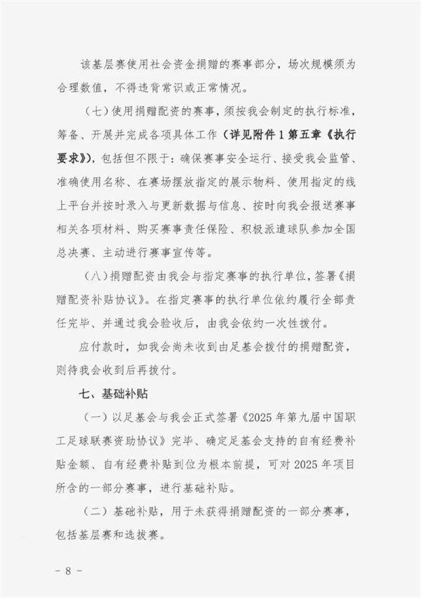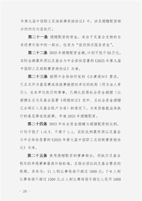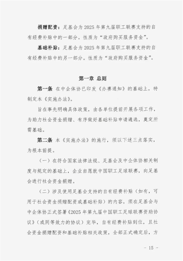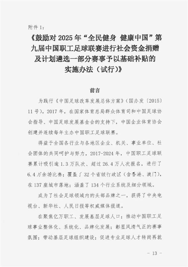 2、附加1《鼓励对2025年“全民健身 健康中国”第九届中国职工足球联赛进行社会资金捐赠及计划遴选一部分赛事予以基础补贴的实施办法(试行)》