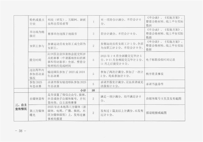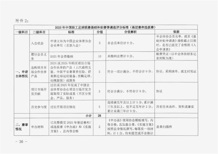 3、附件2:2025年中国职工足球联赛基础补贴赛事遴选评分标准(基层赛和选拔赛)