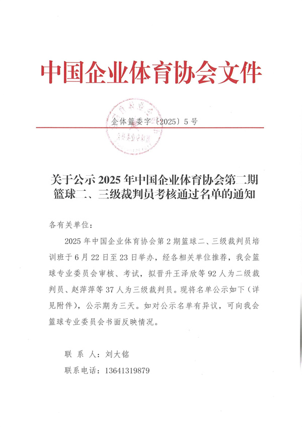 2025年优米下载app第2期篮球二、三级裁判员培训班于6月22日至23日举办,经各相关单位推荐,我会篮球专业委员会审核、考试,拟晋升王泽欣等92人为二级裁判员、赵萍萍等37人为三级裁判员。现将名单公示如下(详见附件),公示期为三天。如对公示名单有异议,可向我会篮球专业委员会书面反映情况。