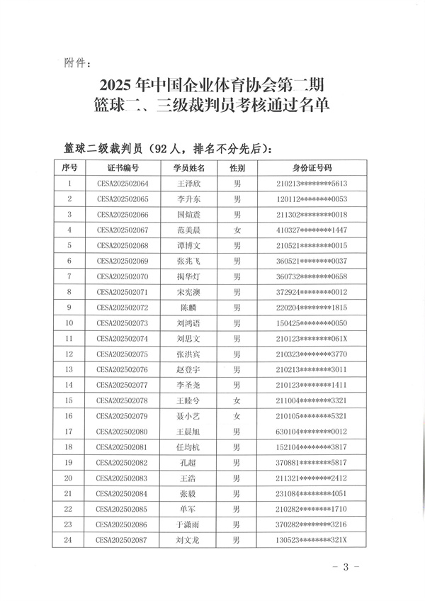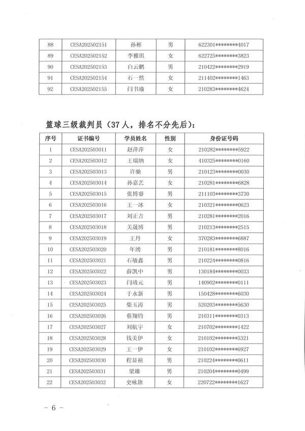 关于公示2025年优米下载app第二期篮球二、三级裁判员考核通过名单的通知