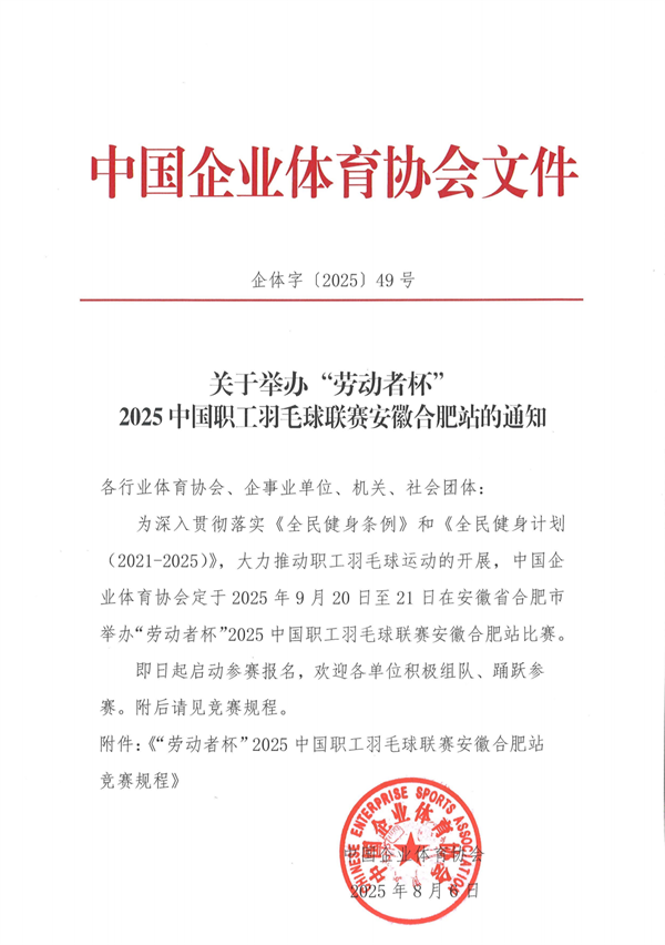 关于举办“劳动者杯”2025年羽毛球安徽合肥分站赛通知