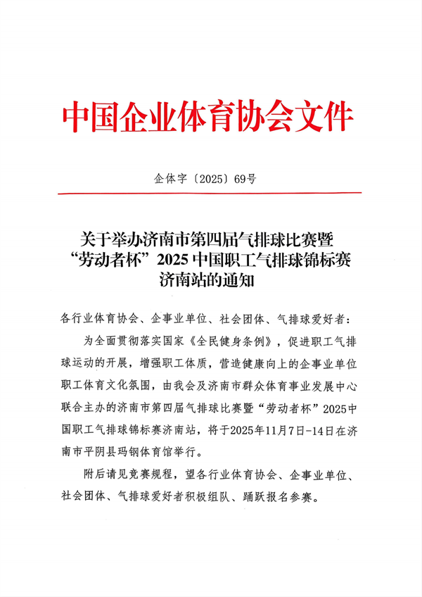 关于举办济南市第四届气排球比赛暨“劳动者杯”2025中国职工气排球锦标赛济南站的通知