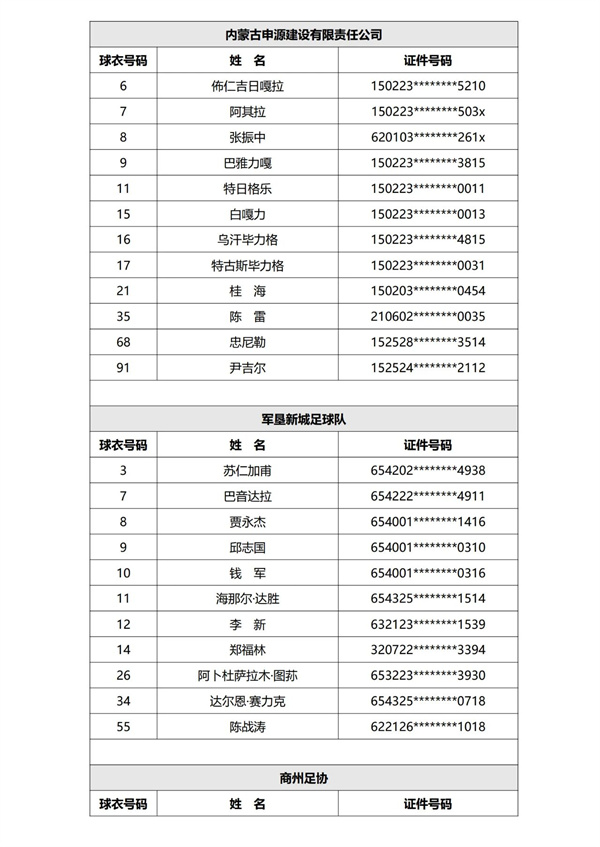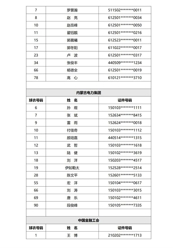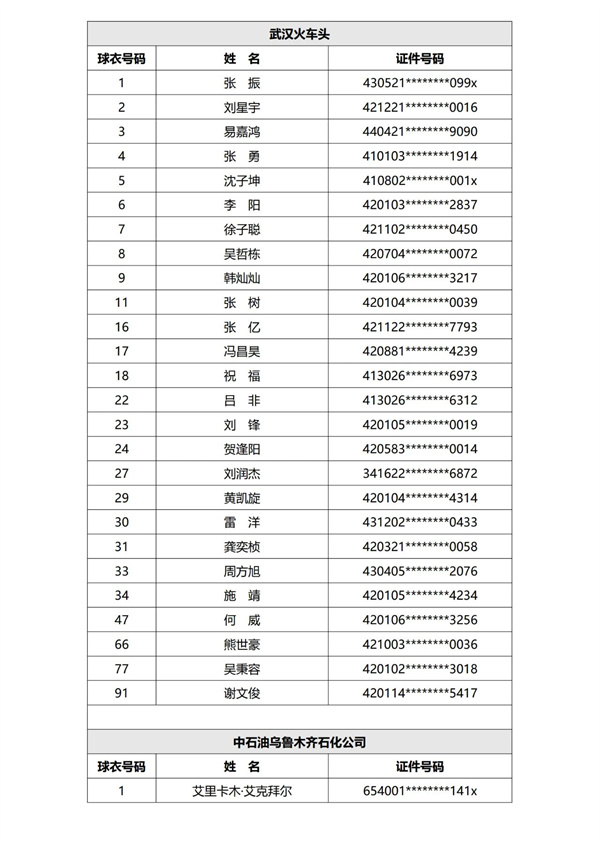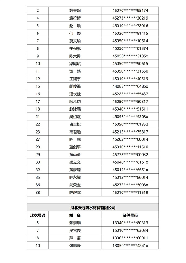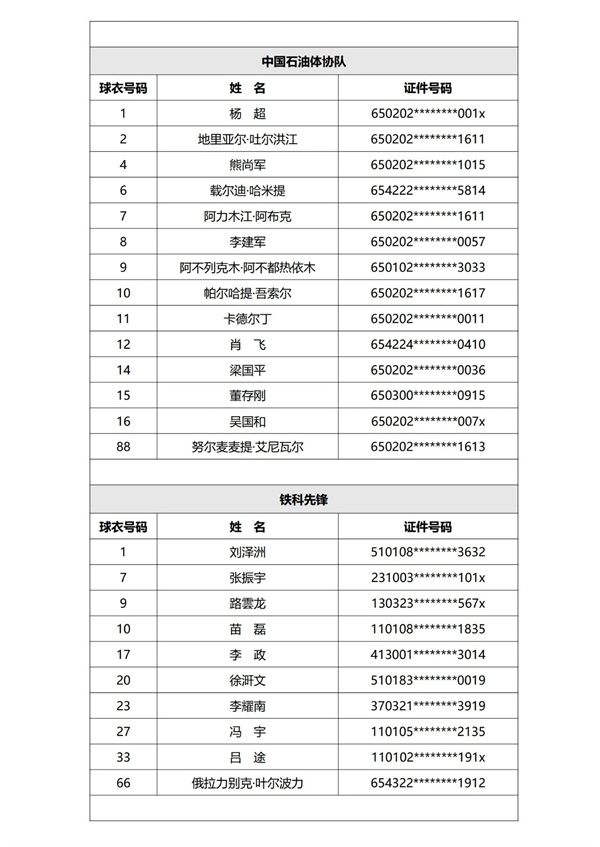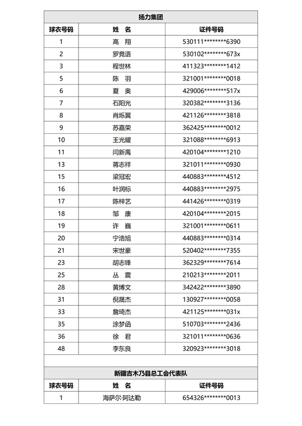 第一批次参赛球队球员名单公示见下: