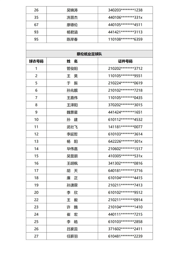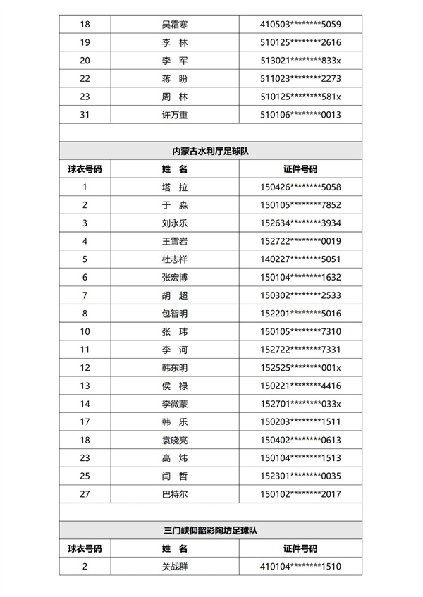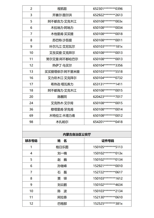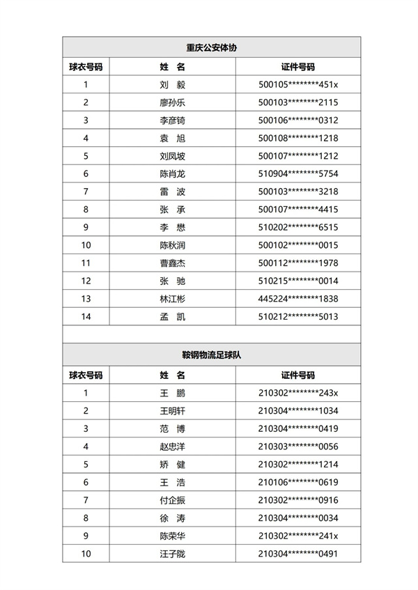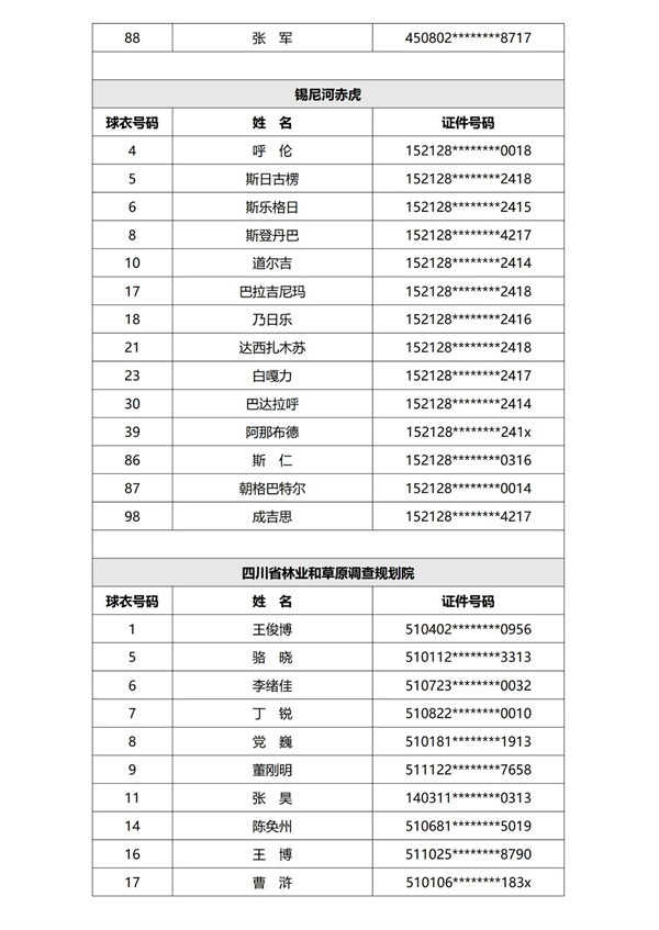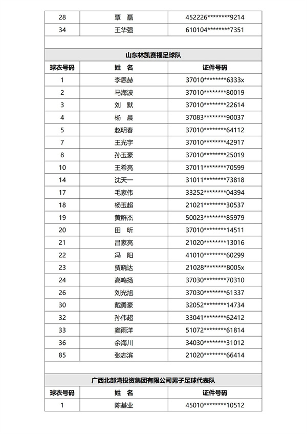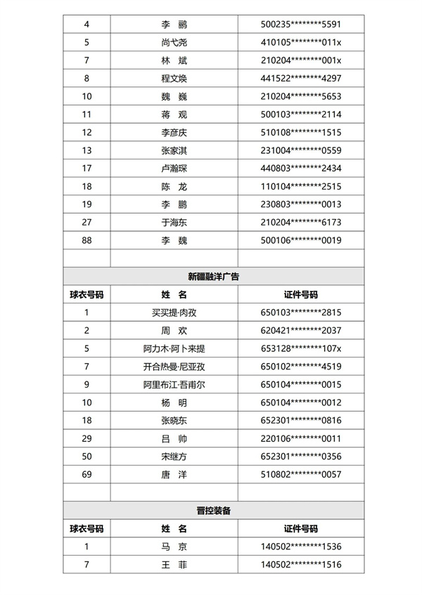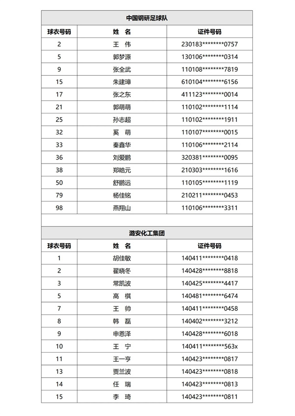 现已完成第一批次40支参赛球队运动员的资格审核,根据《赛事规程》及《报名通知》规定,现进行公示。公示期为三天,自发布之日计算。公示期结束后,组委会不再受理关于运动员资格的举报或仲裁申请。