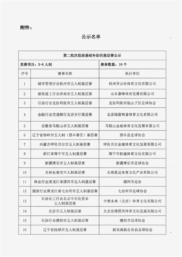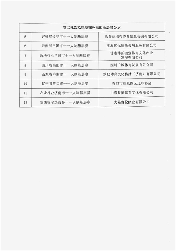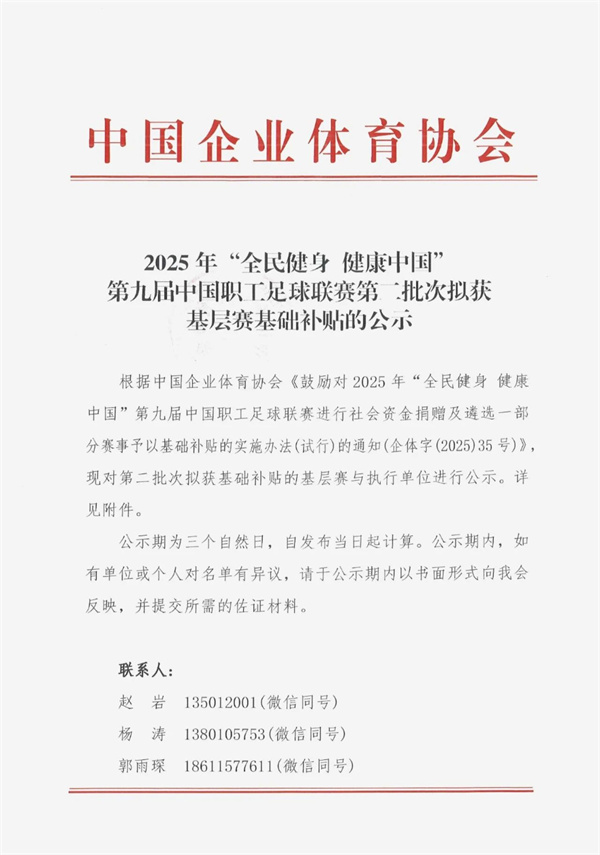 2025年“全民健身 健康中国”第九届中国职工足球联赛第二批次拟获基层赛基础补贴的公示