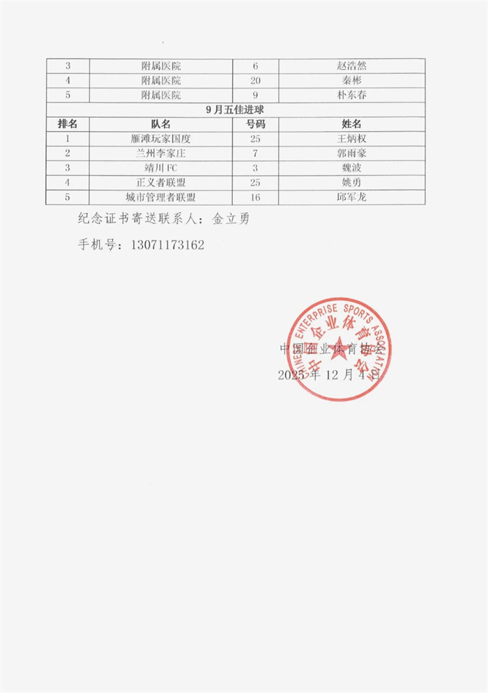 2025年“全民健身健康中国”第九届中国职工足球联赛基层赛五佳进球评选结果公告