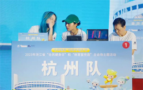 浙江在杭州亚运会场馆黄龙体育馆举行了全民健身知识大奖赛线下决赛,来自浙江11个地市的11支代表队围绕“体育法治建设”“全民健身”“全民亚运”等内容展开问答比拼,通过广大群众喜闻乐见的形式推动“体育法治”“全民健身”等理念入脑入心。