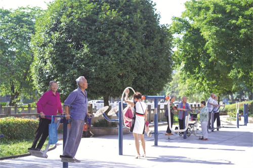 在家门口的居民健身广场里,多了很多打太极拳和四处玩耍的老少身影。在四川省乡村体育设施建设工作中,还特别强调了要加强适老化、适儿化健身设施配置。新建的健身设施项目原则上应100%配置老年人和儿童健身设施,社区、公园等公共场所新配建的健身器材中,适老化、适儿化健身器材数量合计占比应不少于50%,四川省全龄友好的公共体育空间面积正逐渐扩大。