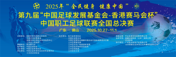 10月28至11月1日,2025年“全民健身 健康中国”第九届“中国足球发展基金会-香港赛马会杯”中国职工足球联赛全国总决赛,将在广东省佛山市三水区激情上演。